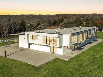 Welcome to 546 Mockingbird Lane-an extraordinary contemporary estate situated on 5 private acres (m/l) in Ardmore, Oklahoma. This custom-built luxury residence offers an impressive blend of modern design, upscale comfort, and private country living. Inside, you'll find a dramatic open-concept layout highlighted by a grand living area with soaring 20-foot walls of glass that flood the home with natural light and showcase the surrounding views. The spacious dining area flows seamlessly into an elegant bar space with a jumbo screen, abundant storage, and sleek quartz countertops. The chef's kitchen is a true showpiece, featuring premium appliances, dual Sub-Zero refrigerators, a massive quartz island, custom cabinetry, and an oversized walk-in pantry. A stunning floating maple staircase leads to two luxurious primary suites, each offering private balconies, spa-inspired baths, oversized walk-in closets with custom islands, and in-suite laundry. An additional private guest suite with its own upscale bath provides comfort and privacy for family or visitors. Entertainment options include a dedicated theater room, expansive recreation/gym space, and flexible living areas designed for both relaxation and hosting guests. Luxury finishes throughout include smart bidet toilets and thoughtful custom details. Outside, enjoy the privacy and freedom of 5 acres with open and covered parking, a concrete basketball court, and room to roam. Conveniently located just minutes from Lake Murray, Lake Texoma, shopping, dining, and gaming destinations including Winstar World Casino & Resort. A rare opportunity to own one of Southern Oklahoma's most unique luxury properties. Schedule your private tour today.